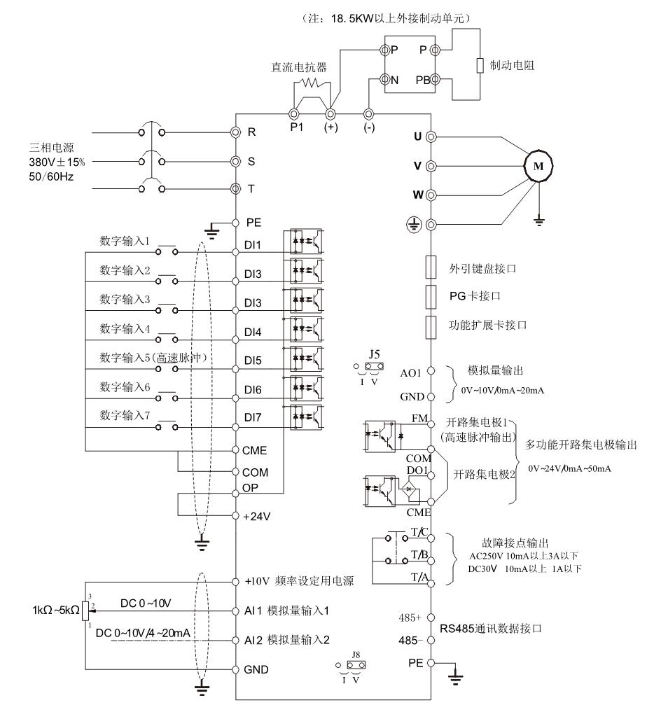4.多種速度控制方式:模擬量輸入0-5VDC,0-10VDC,0/4-20mA;面板電位器調速(更改參數可設置上下按鍵調速);外接電位器調速;可通過485通訊調速。